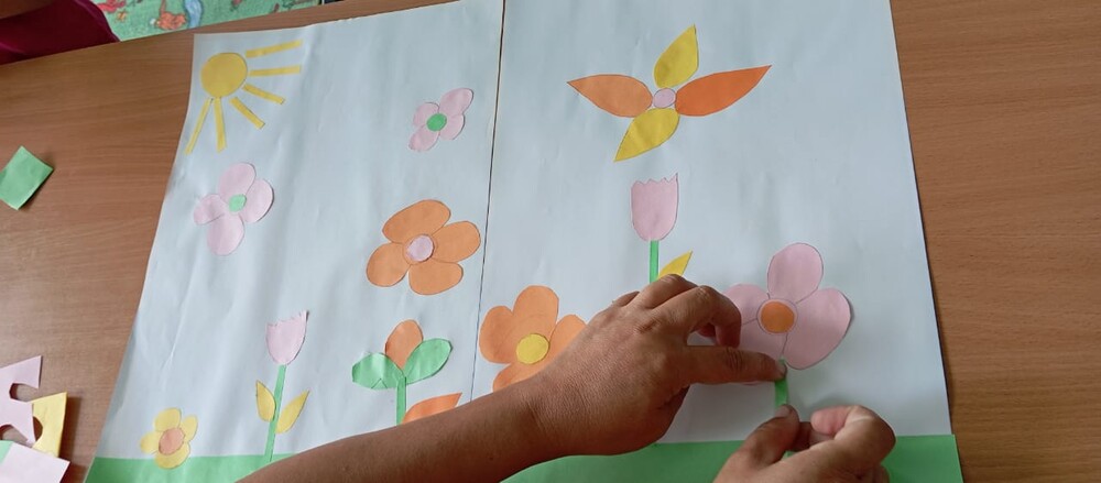 При помощи вырезанных цветов, участники передали свое настроение и видение прекрасного.